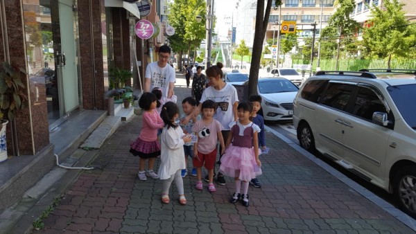오늘 유치부 1부 예배 후 노방전도 했어요~^^