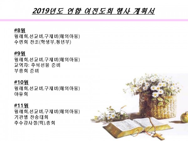 2019년 연합여전도회 행사계획서 및 임원구성 페이지 정보 작성자 관리자 작성일19-07-22 23:33 조회5,032회 댓글0건 다음글 목록 본문 2019년 연합여전도회 행사계획서 및 임원구성 댓글목록 등록된 댓글이 없습니다. 다음글 목록